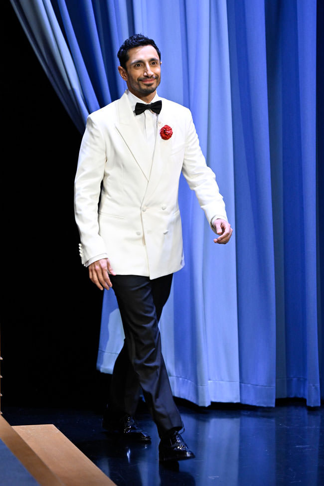 As always, he looks fantastic, but we can’t say we’re loving the innovative way of wearing a pocket square.