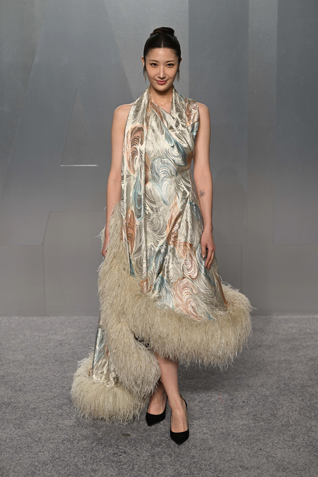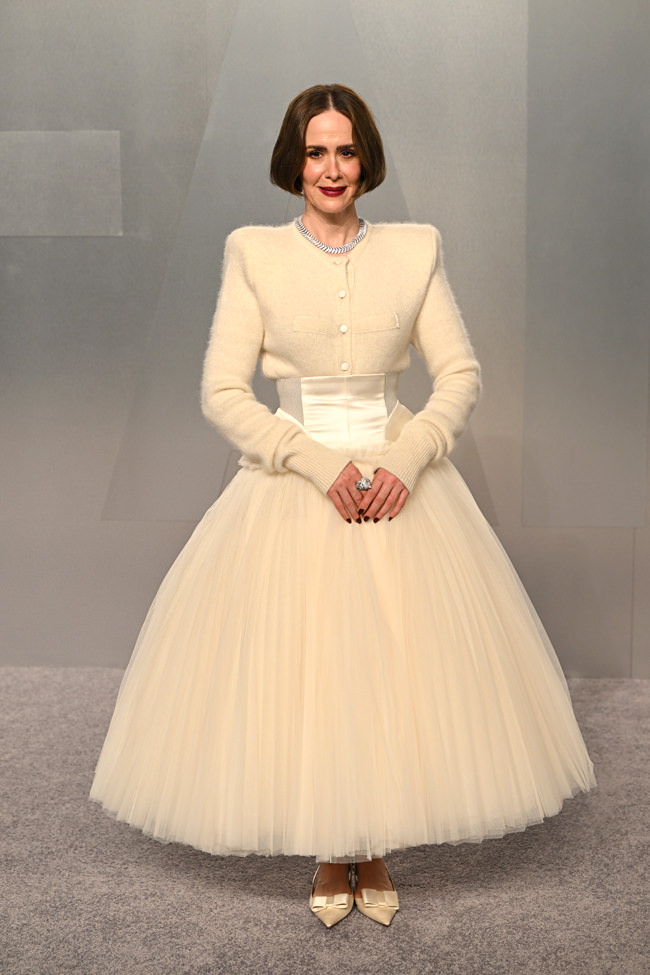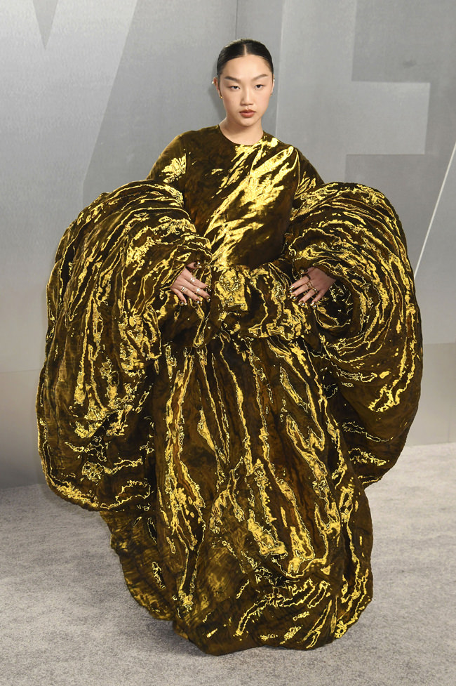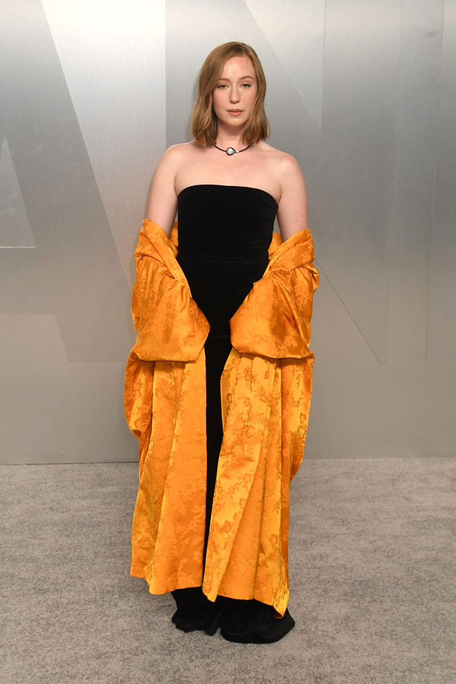 Still very tired of seeing feathers on the red carpet, but this is darkly glamorous, like an updated Norma Desmond.